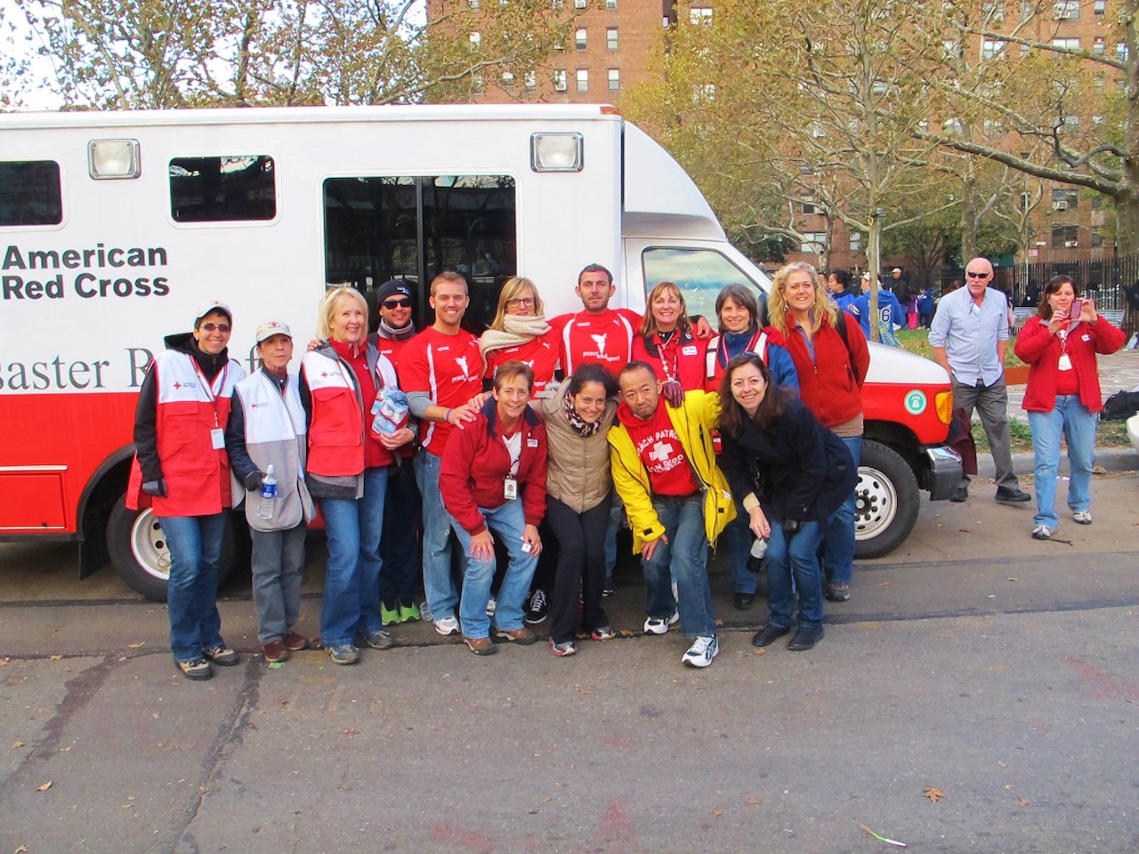 The 18 runners from Team Peace and Sport who made it to New York volunteered with a disaster relief team from the American Red Cross over the weekend, helping to distribute supplies, food and water in a community center located in hard-hit area of downtown Manhattan.